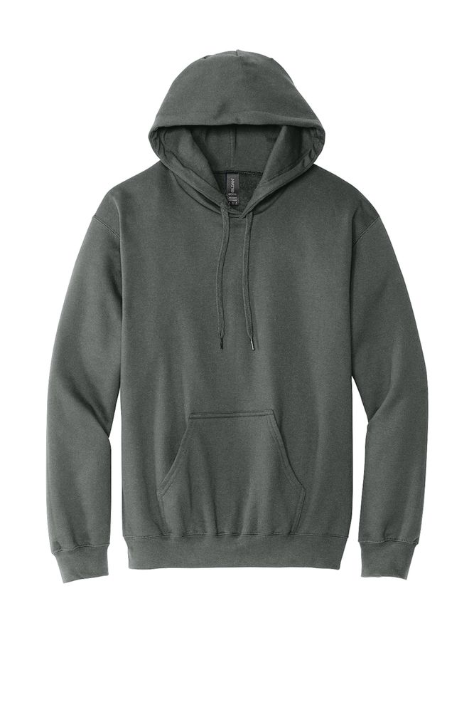 Gildan Softstyle Pullover Hooded Sweatshirt 8.4-ounce, 80/20 ring spun cotton/poly 75/25 ring spun cotton/poly (Ring Spun Sport Grey) 50/50 ring spun cotton/poly (Dark Heather) Two-end ring spun cotton face fabric Two-piece dyed-to-match jersey fabric-lined hood Double-needle hem and topstitching on outside of hood seam 3/8-inch flat drawcords Dropped shoulder 1x1 rib knit with spandex cuffs and bottom band Tubular body Classic fit Tearaway label Select colors up to 5XL